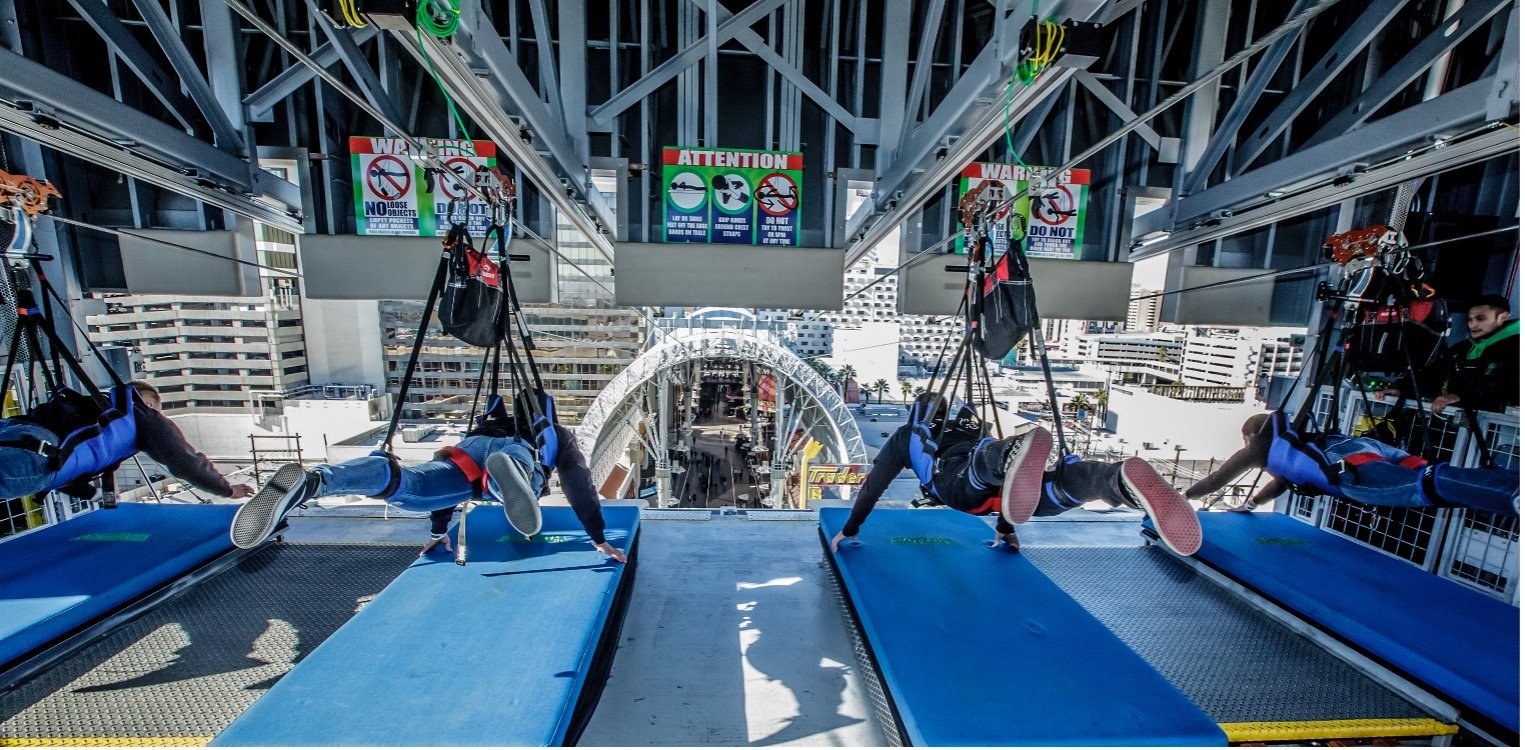 Zip and zoom through the air on SlotZilla, an 11-story, two-block-long, slot-machine-inspired zip line attraction. This largest slot machine in the world features Las Vegas icons such as oversized dice, a martini glass, coins, two showgirls and more.